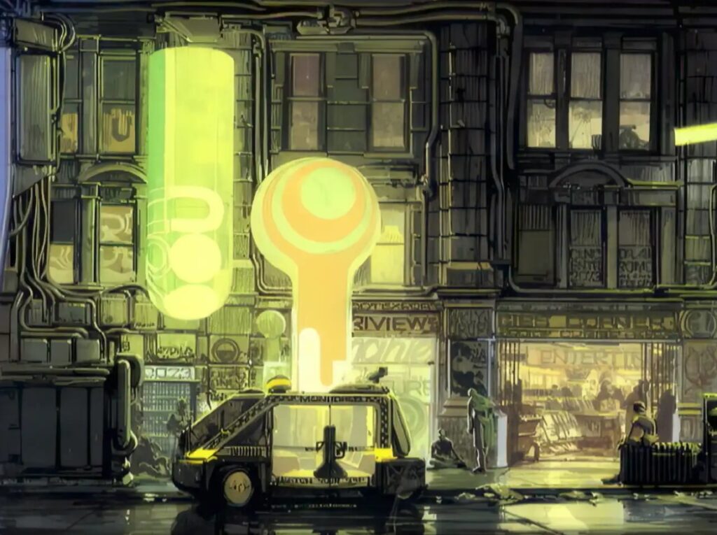 One of the most iconic cases is Syd Mead, whose futuristic illustrations deeply influenced the aesthetic of movies like Blade Runner. His approach —filled with monumental volumes, technological detail, and layered urban chaos— set a new standard for visual science fiction.